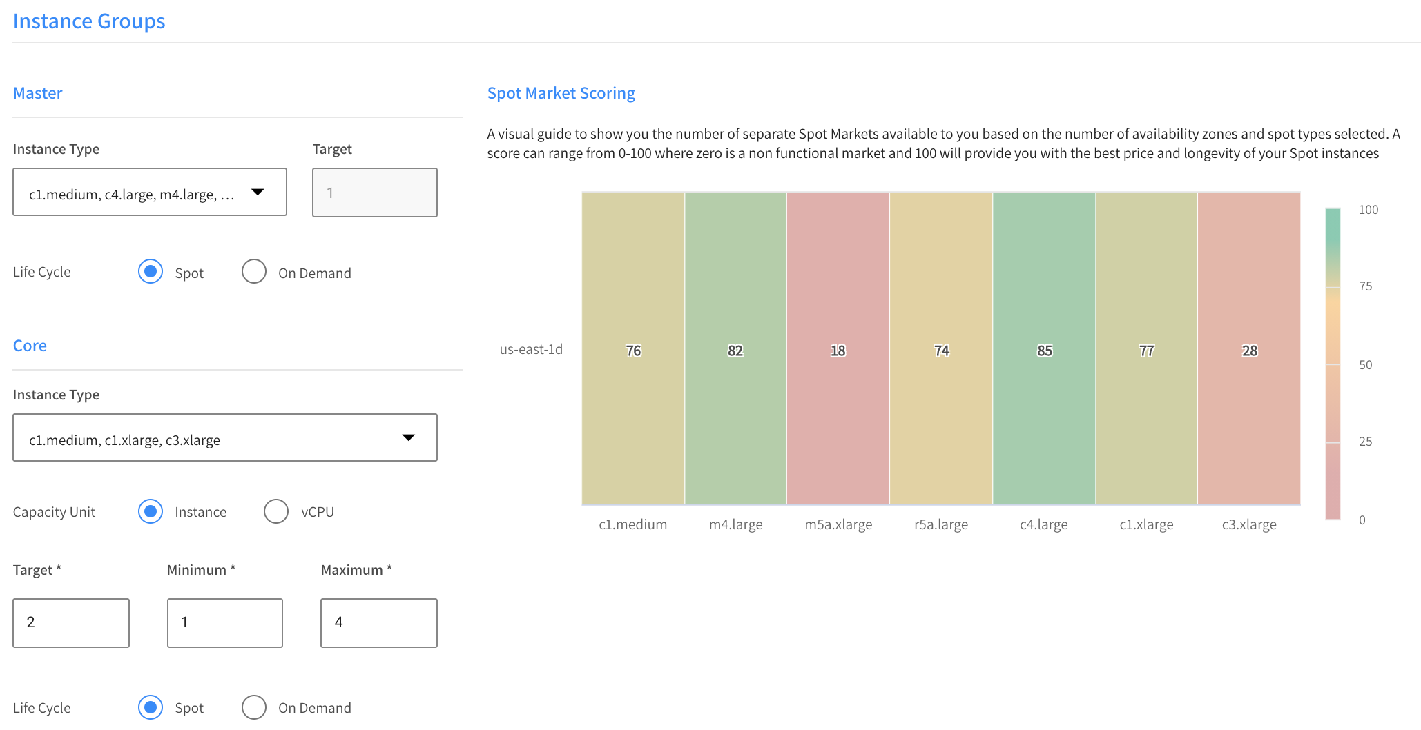 • Life Cycle: Choose Spot or On Demand.