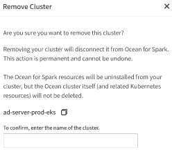 Enter the name of the cluster to confirm, and click Remove Cluster.